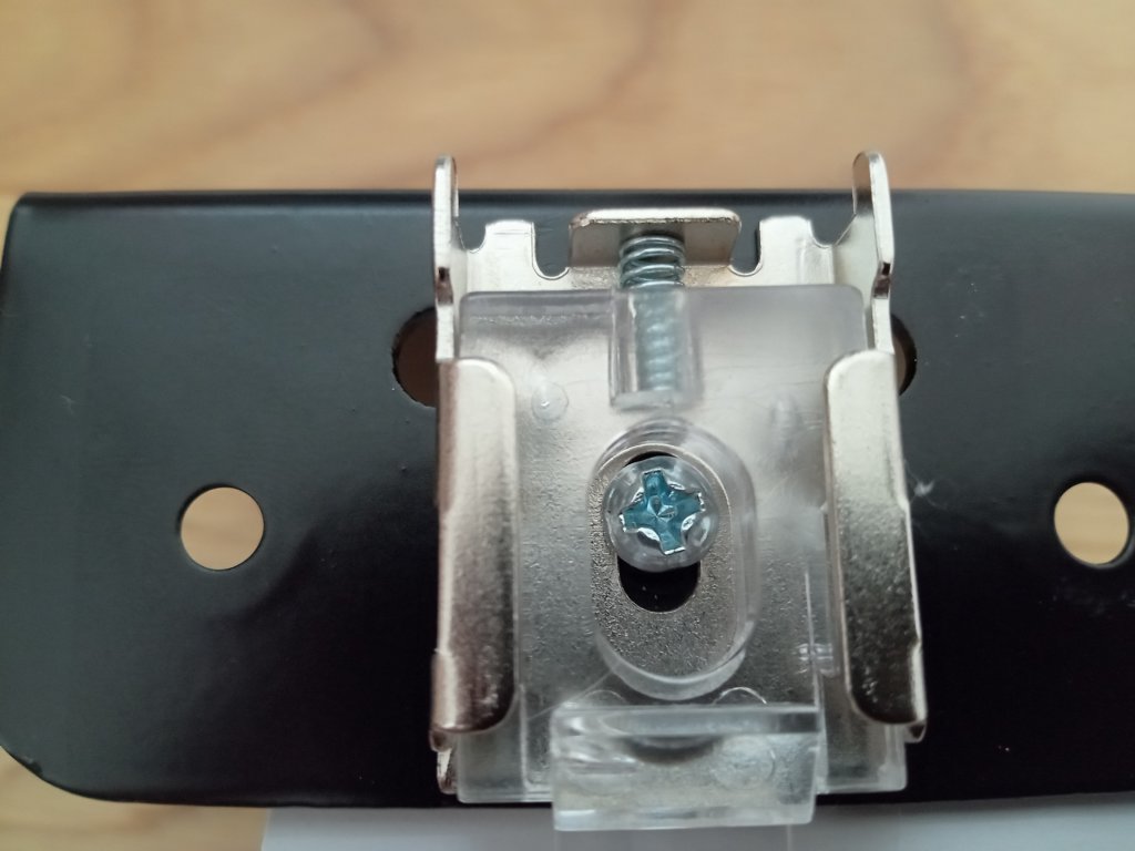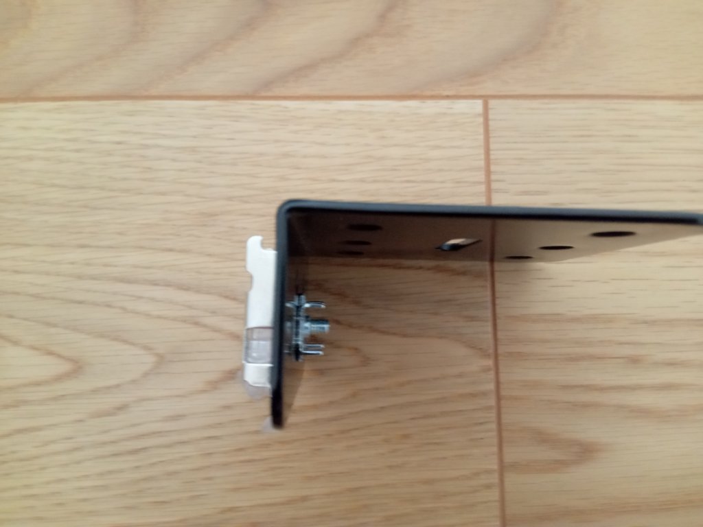 写真のように取り付けます。取り付け位置はL字金具の幅の狭い方の真ん中の穴にしました。